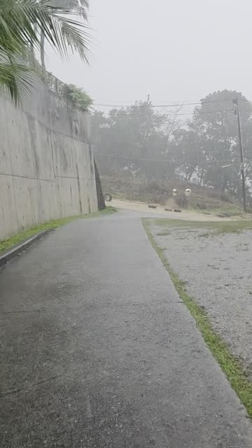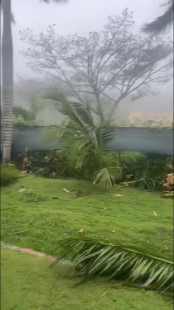 Footage shows powerful gusts whipping palm trees, tearing at roofs and fences, and scattering debris across a rain-soaked, foggy residential yard in Sandy Bay on October 28. 2025-10-29 17:14:10