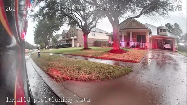 Footage from a fire truck shows the Cy-Fair Fire Department Engine 11 fire crew taking cover as strong winds battered Houston in the afternoon of November 24. 2025-11-26 13:48:01