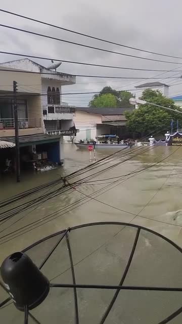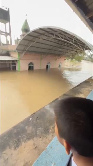 Footage shows murky floodwaters rising around the Islamic centre, submerging the building's ground floor in Hat Yai District, Songkhla Province. 2025-11-26 13:47:31