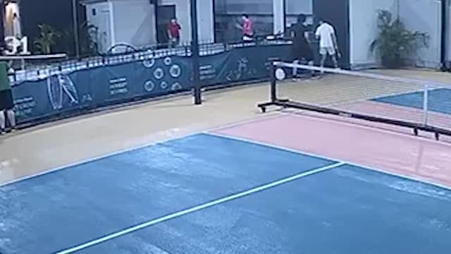 CCTV footage shows the man swinging the golf club to hit the ball, which then ricocheted off the wall and struck the pipe above him in Jiangsu, China. 2025-12-09 22:05:43