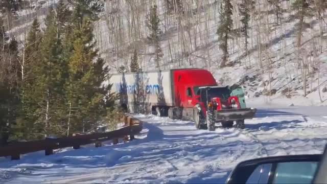 Footage captured by Dawn Thompson shows the red vehicle stuck sideways in fresh snow along the scenic byway between Evergreen and Idaho Springs on December 8. 2025-12-09 21:48:17