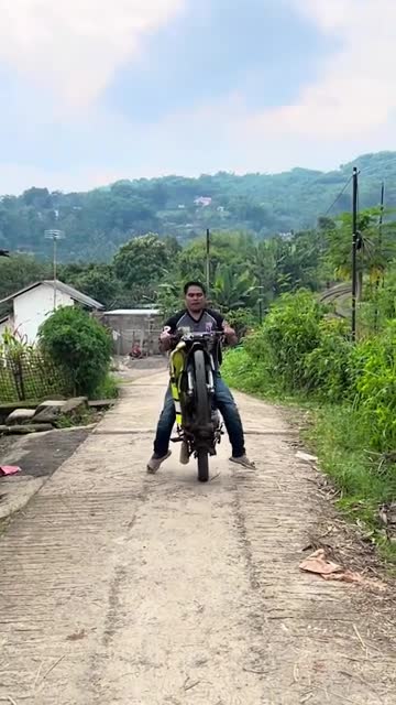 Footage captured by Idam Prayoga shows the motorist attempting to board the two-wheeler with its rear wheel on the ground in Indonesia. 2026-01-19 21:34:35
