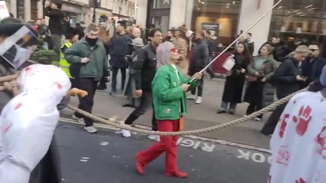 Footage shows demonstrators dressed in symbolic costumes to show support for the Iranian people on Regent Street around 2:30 pm on Sunday. 2026-01-20 12:58:10