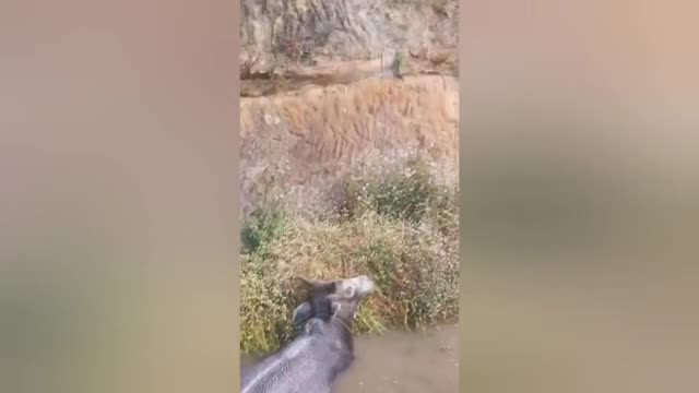 Footage shows members of the Atal Kamdhenu Gau Sewa Sansthan retrieving the hapless bovine, named Nandi, which was stuck in a puddle of water beside the railway in Shahdol, Madhya Pradesh.