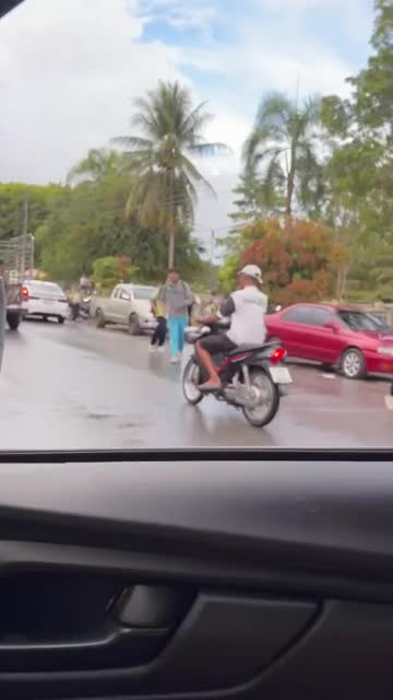 The pair were riding a rented blue motorbike down a residential street when they noticed a black bag left out to dry on the holiday island of Phuket on February 8. 2026-02-10 21:00:32