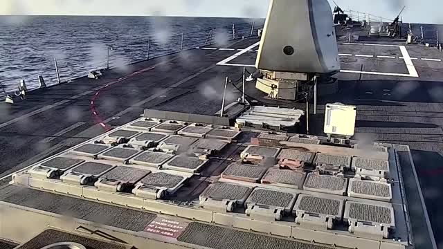 Footage shows the Arleigh Burke‑class guided‑missile destroyer launching a salvo of 13 Tomahawk Land Attack Cruise Missiles on March 10. 2026-03-17 11:49:42