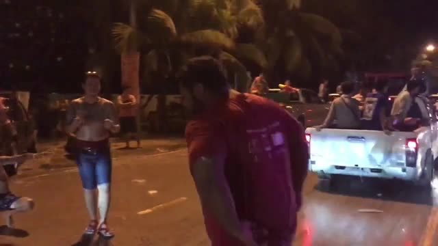 Mos, who weighs 140 kilograms, busted the flash moves on the road at during Thailand's New Year Songkran celebrations in Chonburi, Thailand, on April 17, 2019. 2026-03-17 09:37:48