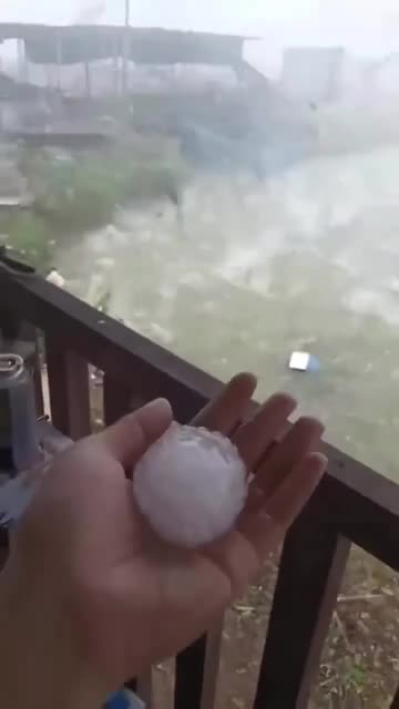 Footage shows pea-sized icy marbles pelting the metal sheets of a house, damaging the roofing as hailstones battered the capital Vientiane. 2026-03-23 20:32:35