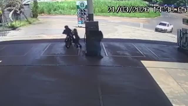 Footage shows a driver punching another motorcyclist during a confrontation at a PTT petrol station in Chiang Mai on March 24 at around 12:20 am, before the man falls to the ground. 2026-03-30 13:39:19