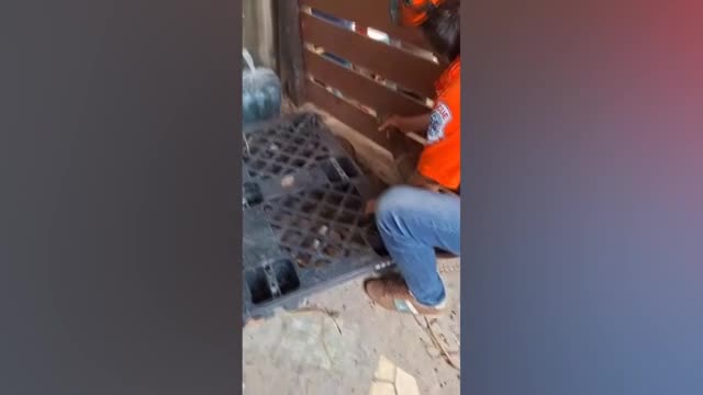The homeowner was about to shower when she noticed the radiated rat snake hanging from clothes hook holding her underwear in Hanoi, Vietnam. 2026-04-13 16:40:41