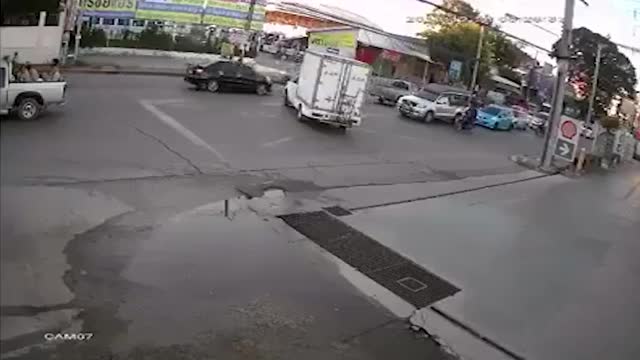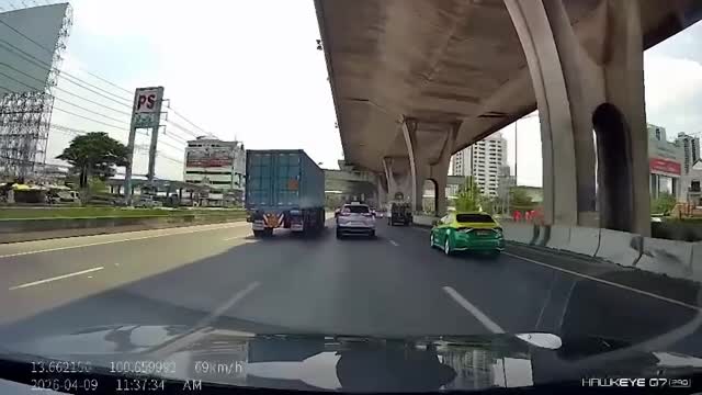 CCTV footage shows the woman riding her bike when she suddenly skidded on the slippery surface at the Shell gas station in Bangkok, Thailand. 2026-04-14 10:51:51