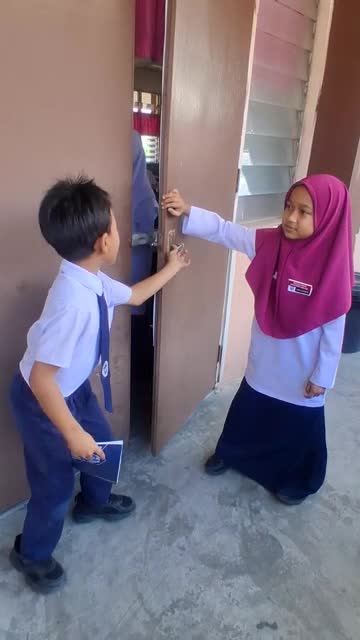 Lilik Hikmah Aprillia, wearing a loose brown uniform dress, lost her footing and fell onto her stomach after missing the ball during a PE class in West Java, Indonesia. 2026-04-13 16:52:41