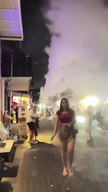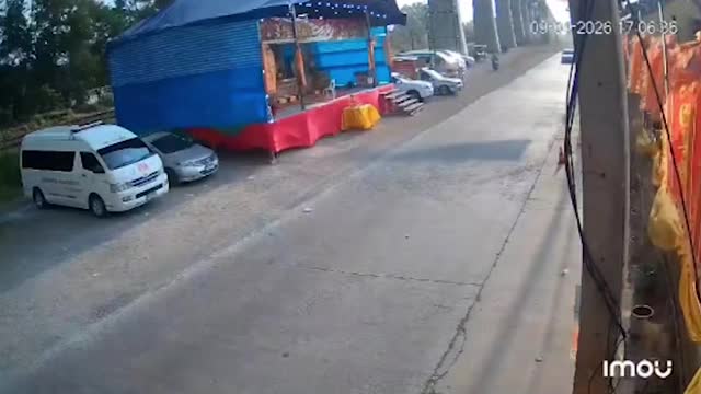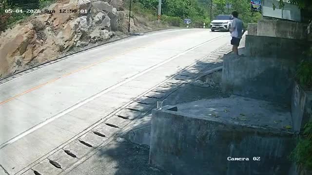 Surveillance footage shows the male holidaymaker, seen in a white shirt, blue shorts, and sunglasses, waiting for cars to pass by before approaching a wall on 'Full Moon Party' island Koh Phangan on April 5. 2026-04-14 10:47:16