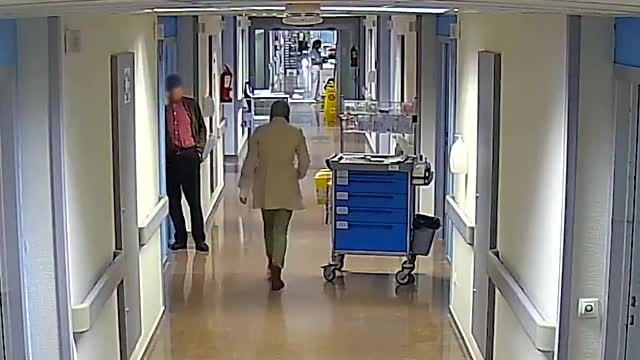 CCTV footage shows a staff member attempting to grab an agile calico feline in the lobby when Monkol, the hefty orange kitty, charged at a glass panel at Klai-Por Pet Clinic in Udon Thani, Thailand. 2026-04-13 16:44:59