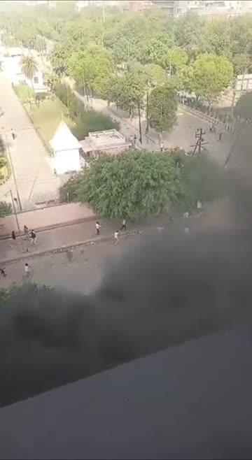 Footage shows chaos at the demonstration, with activists seen running away from a fire that sent thick smoke along the roadside in Noida, Uttar Pradesh, on Monday. 2026-04-14 16:44:52