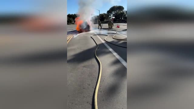Terrifying footage shows a fireball erupting from the vehicle, followed by a huge blast that echoed across the neighbourhood on April 10. 2026-04-14 16:47:29