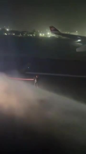Footage shows travellers using the laminated safety instruction cards from the seat pockets to cool themselves inside a Boeing 737 cabin. 2026-04-23 14:06:48