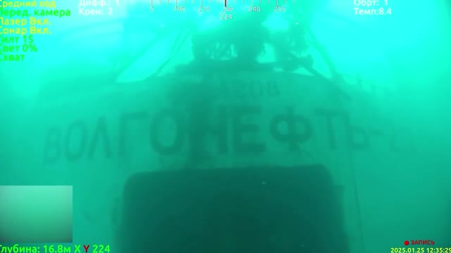 The first video reportedly shows subaquatic workers from the Russian Ministry of Emergency Situations examining the stern of the sunken tanker, Volgoneft-212, located at a depth of 50 to 65ft (15 to 20 metres) off the coast of Russian-occupied Crimea, Ukraine, on Saturday, January 25.
