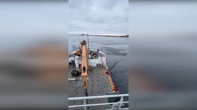 The U.S. Coast Guard Cutter Mackinaw (WLBB 30) has started clearing ice in the Duluth-Superior Harbor as part of Operation Taconite. 2025-01-10 13:06:40