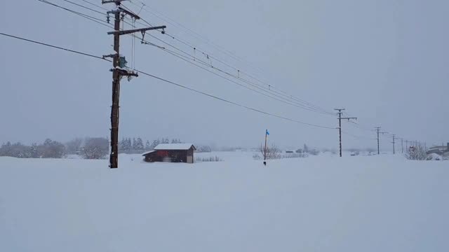 Footage shows the locomotor removing accumulated snow on the railway road at Kashiwa-no Koukoumae Station in Hirakawa, Aomori Prefecture on December 23.