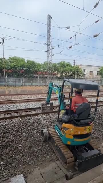 On September 24, 2024, in Yingtan, Jiangxi, the video showed the instructor maneuvering the compact excavator with precision. He adjusted the position repeatedly, aligning the vehicle's tracks with the rails.
