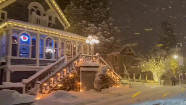 Footage by Geoff Millikan shows snow-covered streets along Donner Pass Road in downtown on Saturday night, December 14, with holiday decorations shining beautifully amid the wintry scene. 2024-12-16 17:36:44