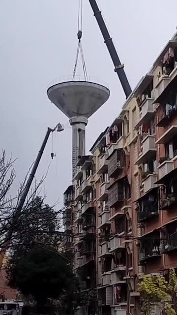 Footage shows residents witnessing the water tower being hoisted by the crane during the clearing operation in Chengdu, Sichuan, on December 12. 2024-12-16 16:50:39