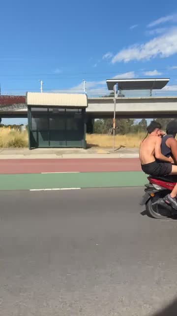 Footage captured by Kristian Rebershak shows the youngsters squeezed onto the two-wheeled vehicle while navigating a motorway during 43-degree Celsius weather in Melbourne. 2026-01-30 14:15:17