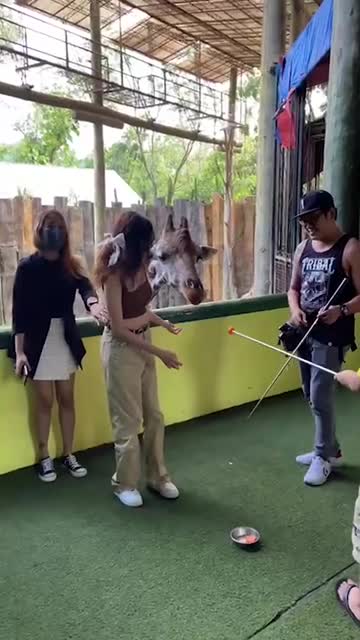 Jhaymee Dolorito and her family were in the attraction when the sweet animal showed affection by nudging the tourist who was posing for a picture at a zoo in Manila, the Philippines.