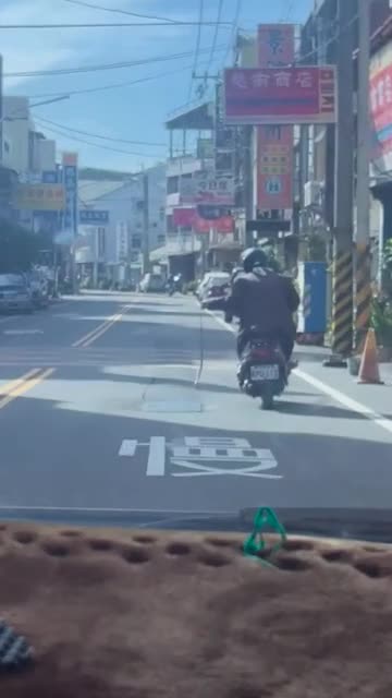 The rider was spotted holding the 3ft (1-metre) reptile in his left hand while gripping the accelerator with his right hand in Shetou Township, Taiwan, on October 23.