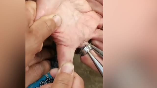 A homeowner heard the poor black-and-white pooch barking and whimpering inside the pit, prompting them to call for help retrieving the canine in Buri Ram, Thailand, on November 18.