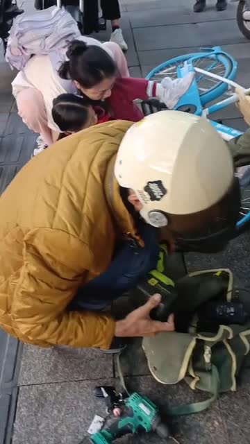 The schoolgirl’s leg became trapped between the metal frame and the tyre, prompting locals to step in and help in Guangdong, China, on November 16. 2024-12-09 13:14:04