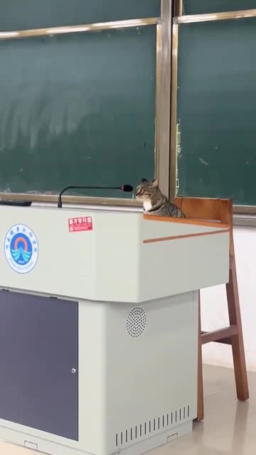Footage shows the tabby feline seated on the stand in front of a microphone in a classroom at Henan Polytechnic in China on November 10. 2024-12-09 13:13:59