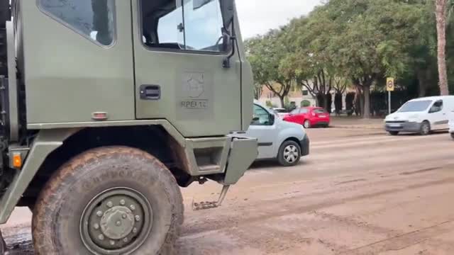 Footage shows officials and machinery from the RPEI12 unit of MING working to transport heavily damaged cars from public streets to a local landfill in Valencia on December 6. 2024-12-09 15:14:18