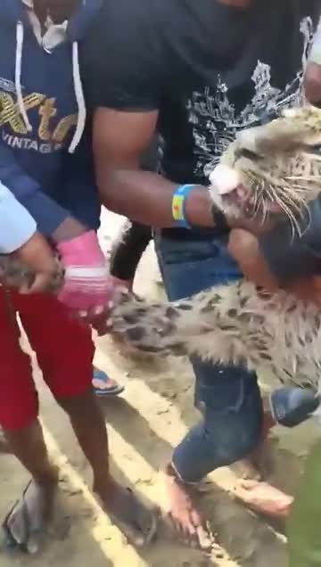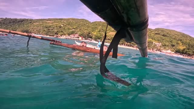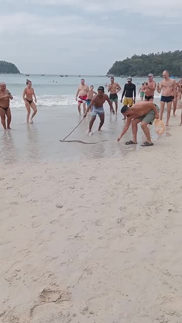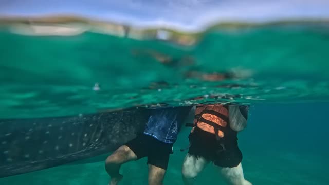 Footage shows the juvenile creature swimming behind the holidaymakers and hitting with its fins the back of a woman in Cebu, the Philippines on November 26.