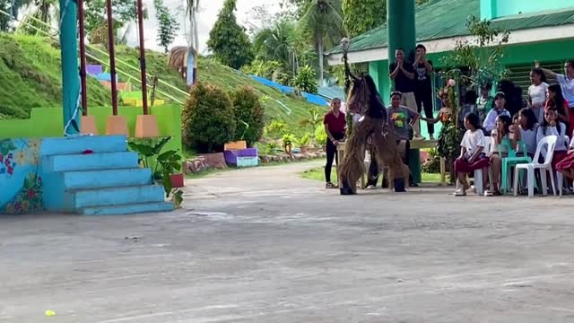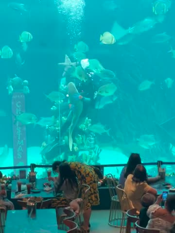 Footage shows the juvenile marine animal hugging with an aquarium diver as they glided in circles at Ocean Park Cebu in the Philippines on November 29.