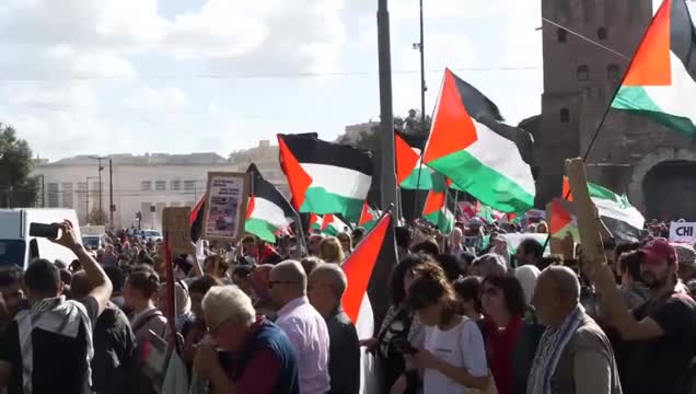 Footage shows demonstrators on November 30, screaming, holding Palestinian flags, banners, and signs, rallying against the ongoing conflict in the region, particularly the deaths of women and children in Gaza.