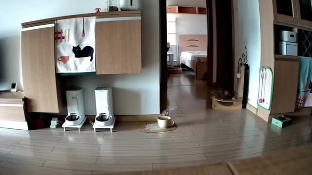 The playful Himalayan cat accidentally knocked over a water-filled cup, spilling it across the floor in Wuhan, China, on October 31.