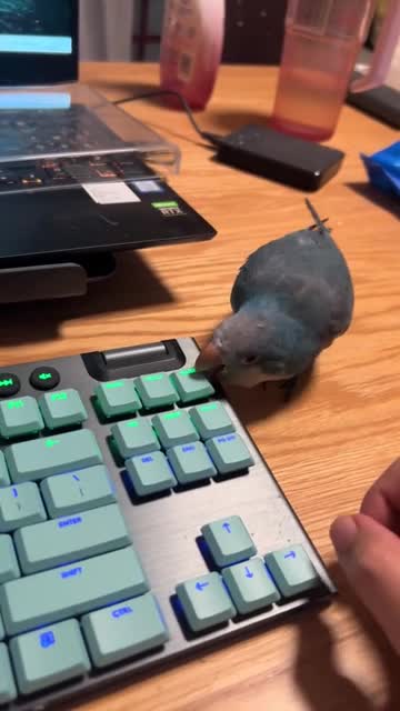 The blue Monk parakeet pulled out the key caps on the mechanical keyboard in an attempt to play with them in Shandong, China, on October 16.