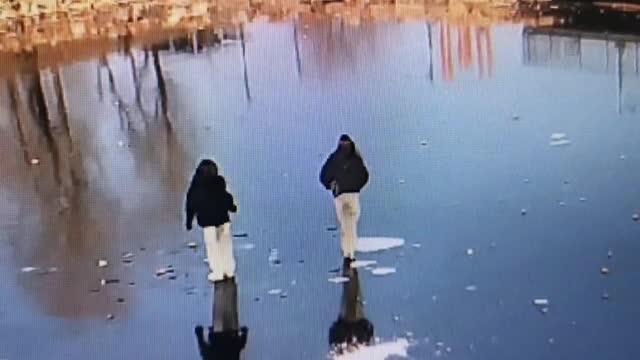 Footage shows two girls walking onto the frozen lake and immediately starting to scare each other in Vladivostok, eastern Russia, on November 30. 2024-12-03 22:25:00