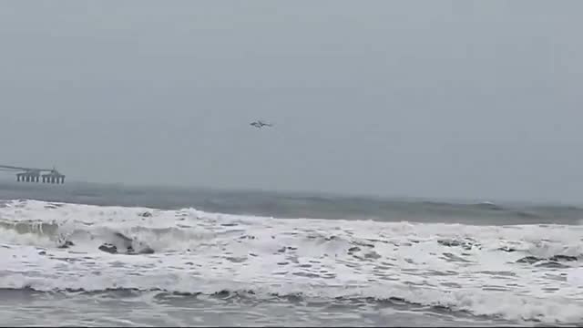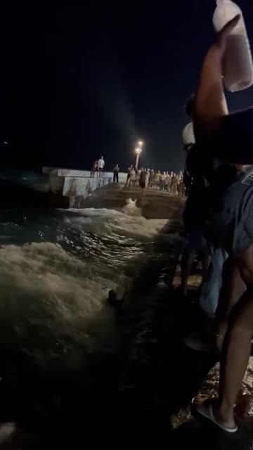 Footage shows the youngster struggling to stay afloat in the arms of a Good Samaritan as the choppy waves battered into the concrete sea wall in Negros Oriental, the Philippines, on November 26.