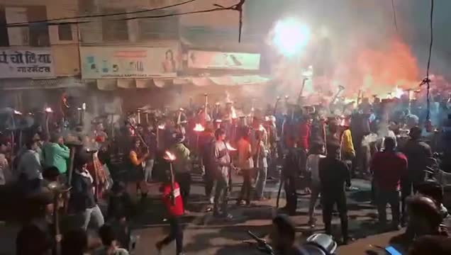 Footage shows the flames rapidly spreading across the street during a tribute procession in Khandwa City in Madhya Pradesh state on November 28 evening. The crowd quickly dispersed as they scrambled to flee the inferno.