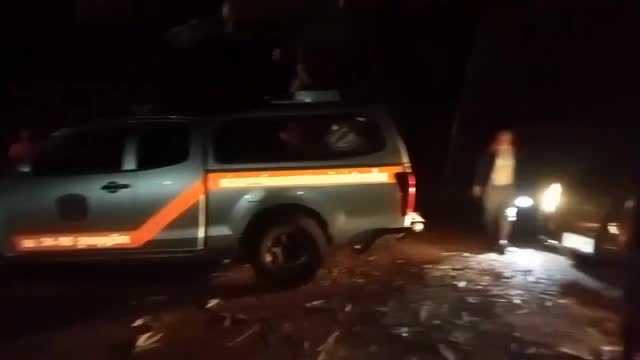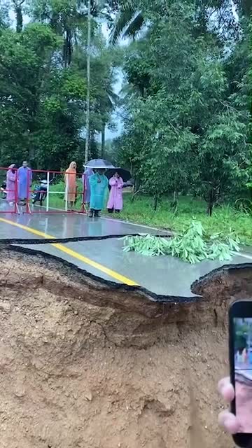 Footage shows a local holding a chair and ladder to support two rescue workers standing on top to reach into the hole and search for the missing moggy named Nomsod in Nonthaburi province, Thailand, on September 19.