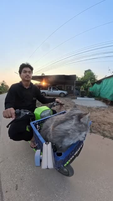 Adunwit Sumbalaha was riding around the neighbourhood with Mochi, the Scottish-Persian mix, when she suddenly hopped out of the blue container in Phitsanulok Province, Thailand. 2026-01-29 14:36:03