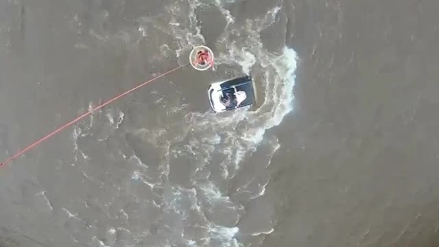 Footage shows the child walking on the sand, which toppled multiple times before he eventually plummeted into a hidden hole in Shaanxi, China, on November 12.