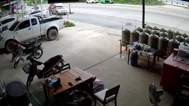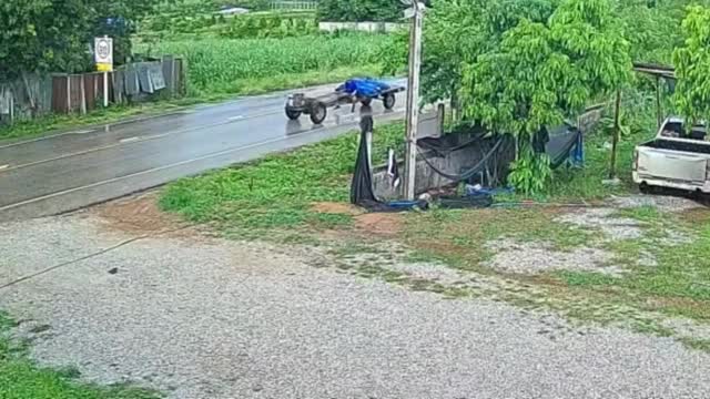 CCTV footage shows the tyre separating from a passing eight-wheeler and turning to the roadside in Phra Nakhon Si Ayutthaya, Thailand, on June 7.