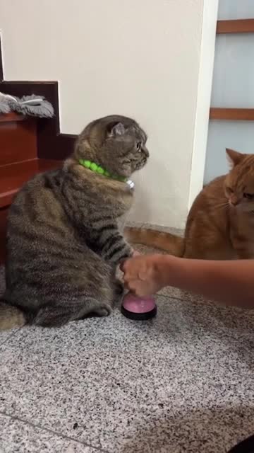 Clever pet cats learn tap bell for treats