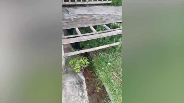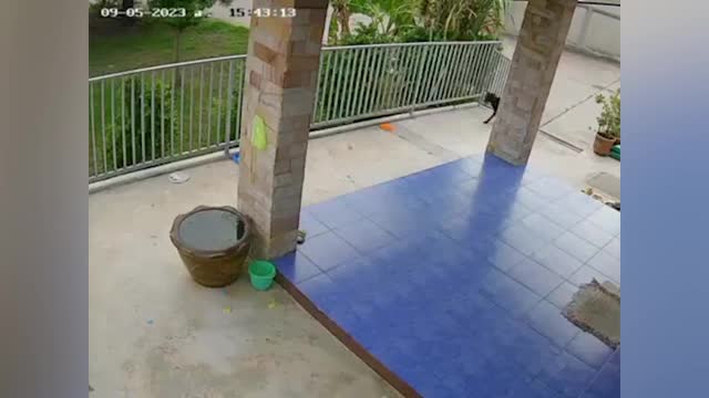 Footage shows the newborn black and white pooch trying to find a way out of the ditch before it was picked up by a resident in Buriram, Thailand on September 10.