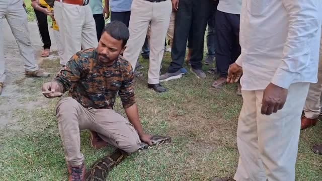 The mammoth serpent slithered into the Bihar Special Armed Police (BSAP) 12-15th camp and tired to pounce on the female troop Simran Gupta while she was on duty in Supaul town, Bihar state, on November 20.