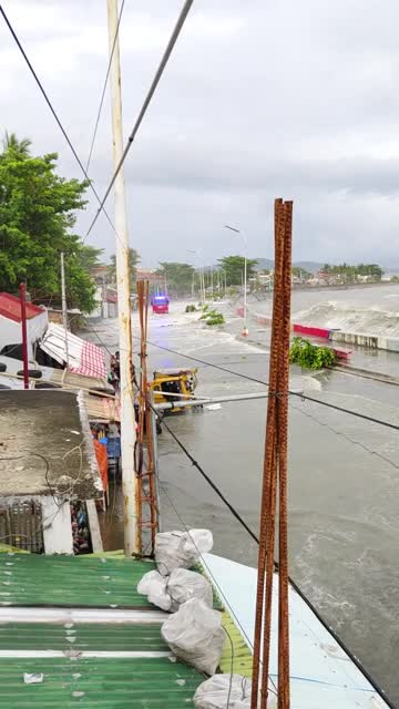 Footage shows Aissline Zianne Encinares, 11, running along the shore while holding a long, metal spear above her right shoulder in Batangas, the Philippines on November 13.